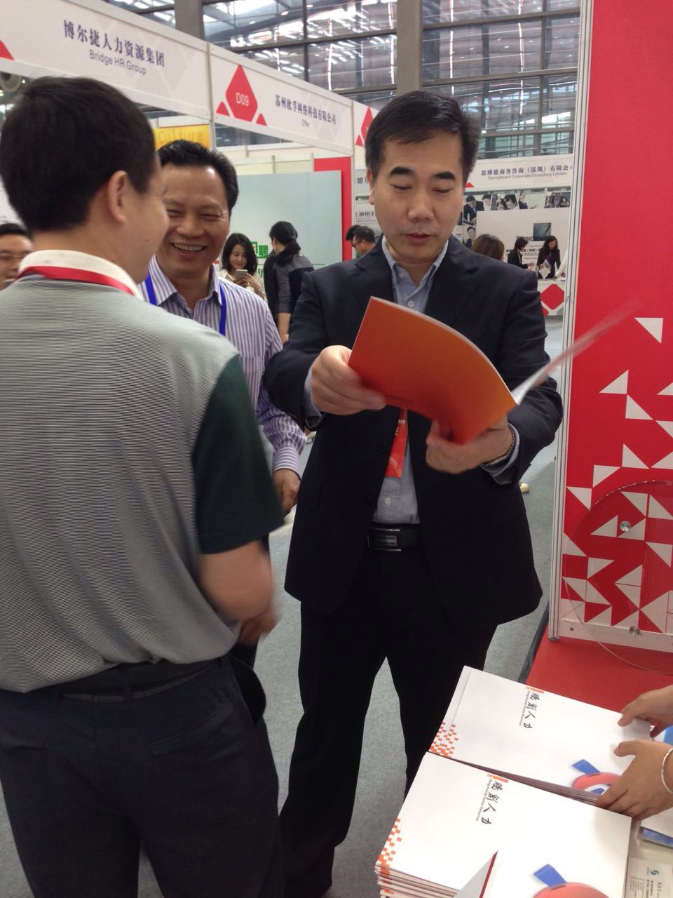 深圳会展中心的鹏创人力展位现场 立法研究院院长李天国及其同事莅临指导