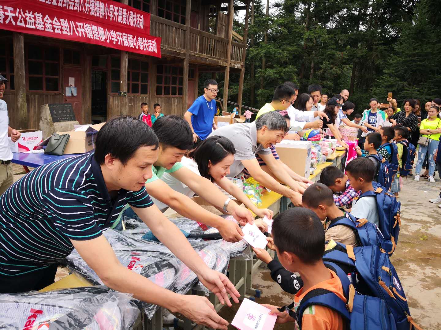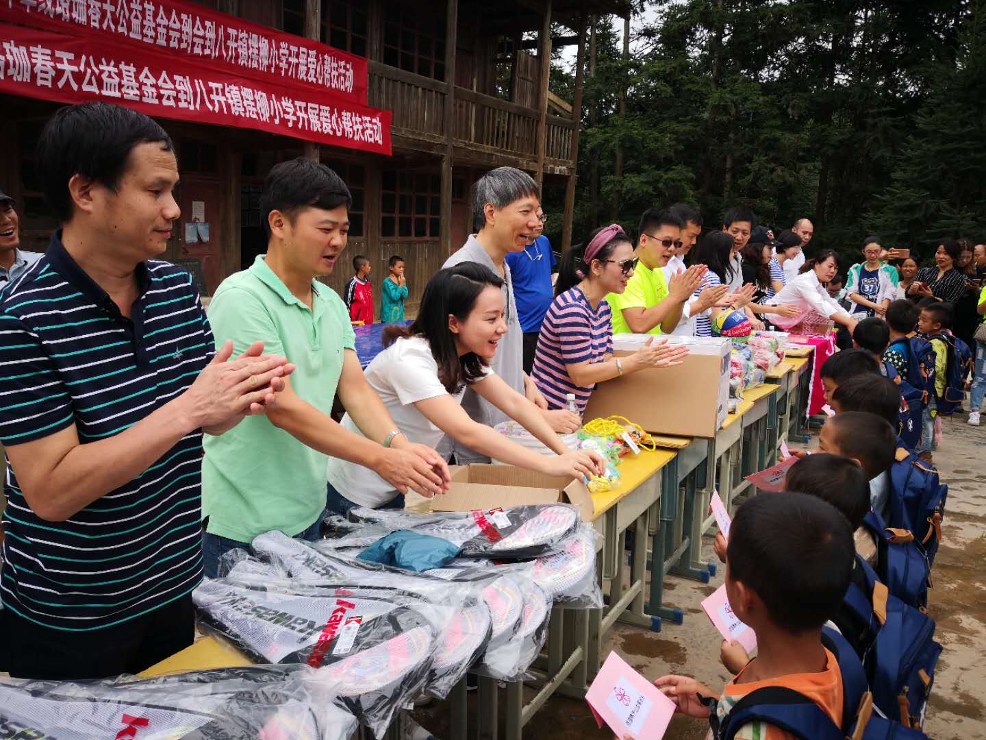 2018年9月8日,珞珈春天公益基金会爱心人士一行16人深入八开镇摆柳小学、摆水村污不小学开展爱心捐赠活动,助力教育扶贫工作。当地县教育局、八开镇相关负责人陪同参加活动。
