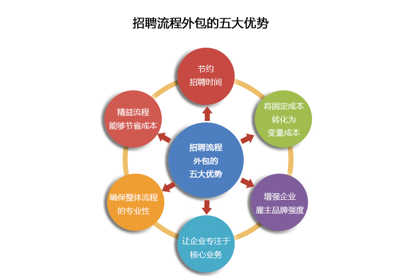 招聘流程外包可以提高招聘质量、缩短填补职位空缺的时间、改善整个行政流程、管理核心业务指标的汇报以及削减总体成本。