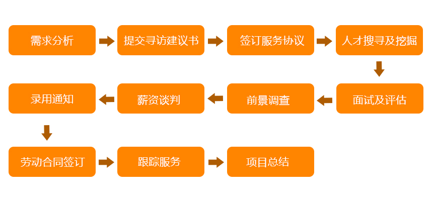 为客户提供咨询、搜寻、甄选、评估、推荐并协助录用高级人才的系列服务活动。针对不同行业不同岗位需求提供专业化的细分方案与人才解决方案。